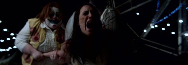 And it just so happens that director Victor Mathieu’s new film CarnieVille features the exact same kind of clowns I described above. The freaky as shit kind. After having witnessed her neighbor murder his own wife in his clown outfit, Corey has been dealing with coulrophobia (fear of clowns) ever since she was a child. On Halloween night, her boyfriend and his friends decide to help her overcome her phobia of clowns by taking her to a nearby carnival. However, they soon discover that the price of admission is their lives.